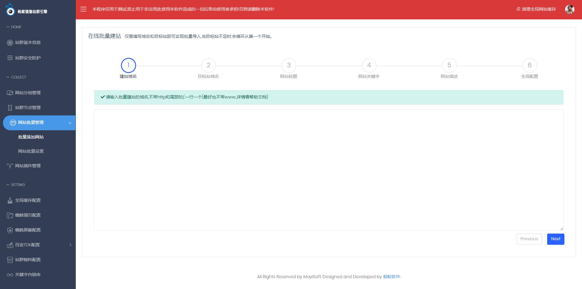 【利用本软件构建的网站造成的任何版权纠纷和法律争议及后果,蚂蚁软件工作室官方不承担任何责任。】
