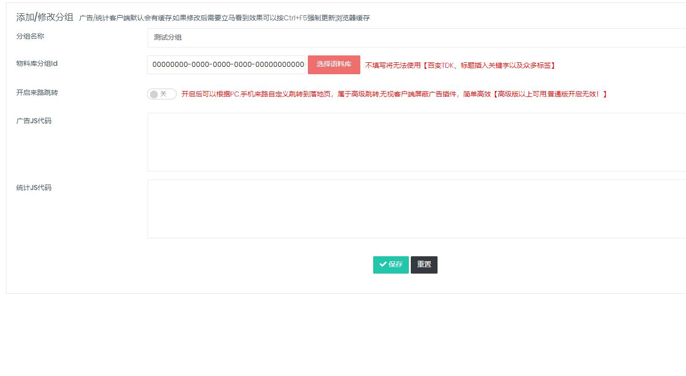 分组设置页面