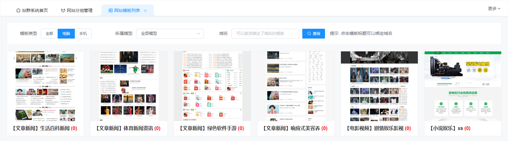 蚂蚁魔方站群软件中,我们支持所有网站模式,轻松构建任意类型的网站,电影、资讯。图片、论坛、小说等等模型,供您选择,非常强大
